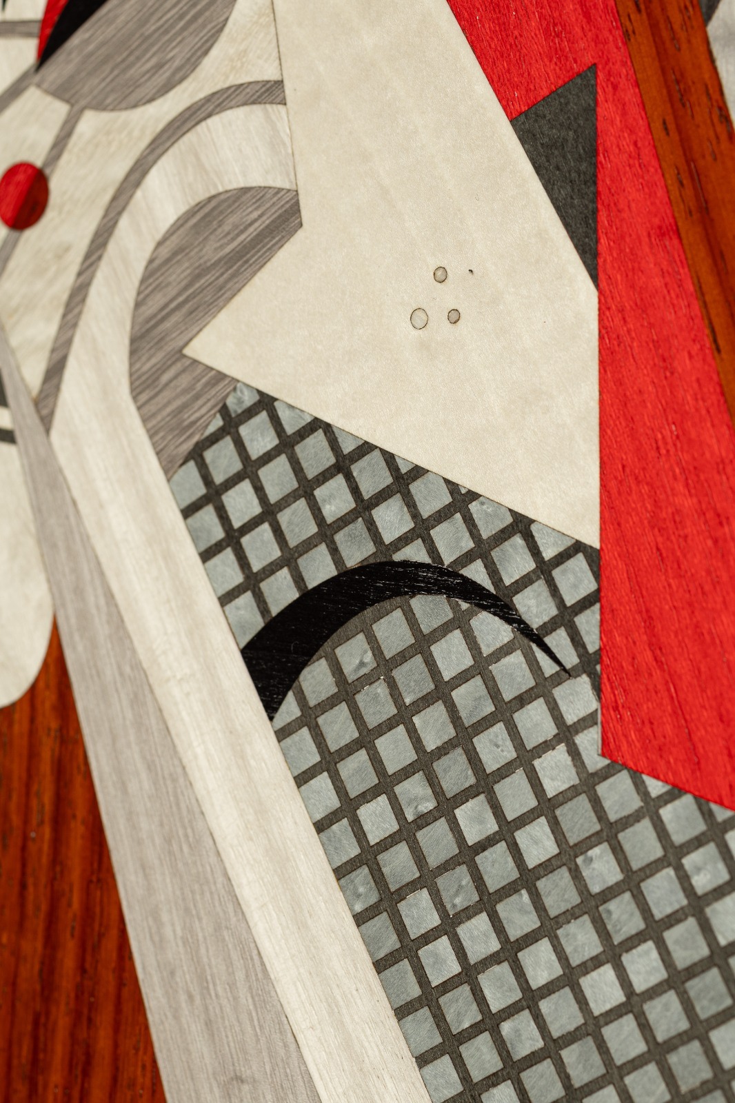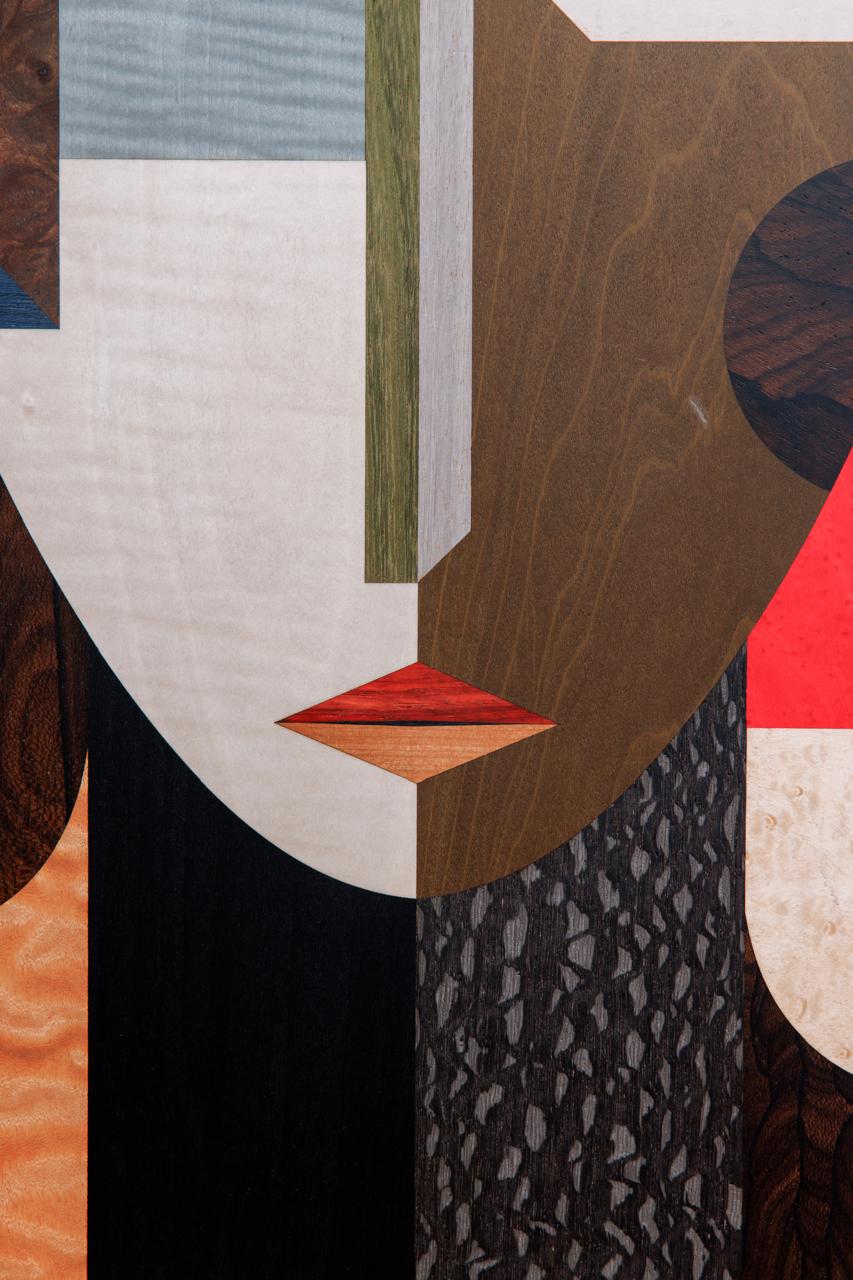 ОПИСАНИЕ Современная авторская интерпретация геометрического портрета, вдохновлённая эстетикой русского авангарда начала XX века. Сочетает строгую геометрию и насыщенные цветовые акценты. Лица собраны из множества фрагментов разных пород шпона, создавая эффект графической мозаики и глубины образа. Панно соединяет классические художественные принципы с современным визуальным языком.