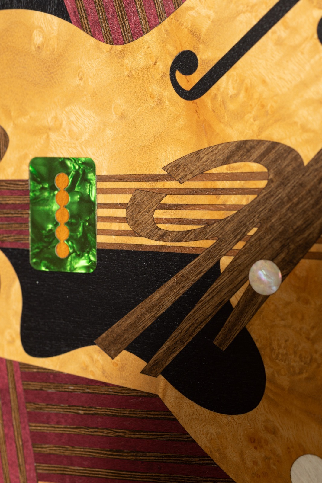 В основе современного искусства маркетри — лазерная резка в сочетании с ручной сборкой фрагментов шпона ценных пород дерева , натурального перламутра и камня.