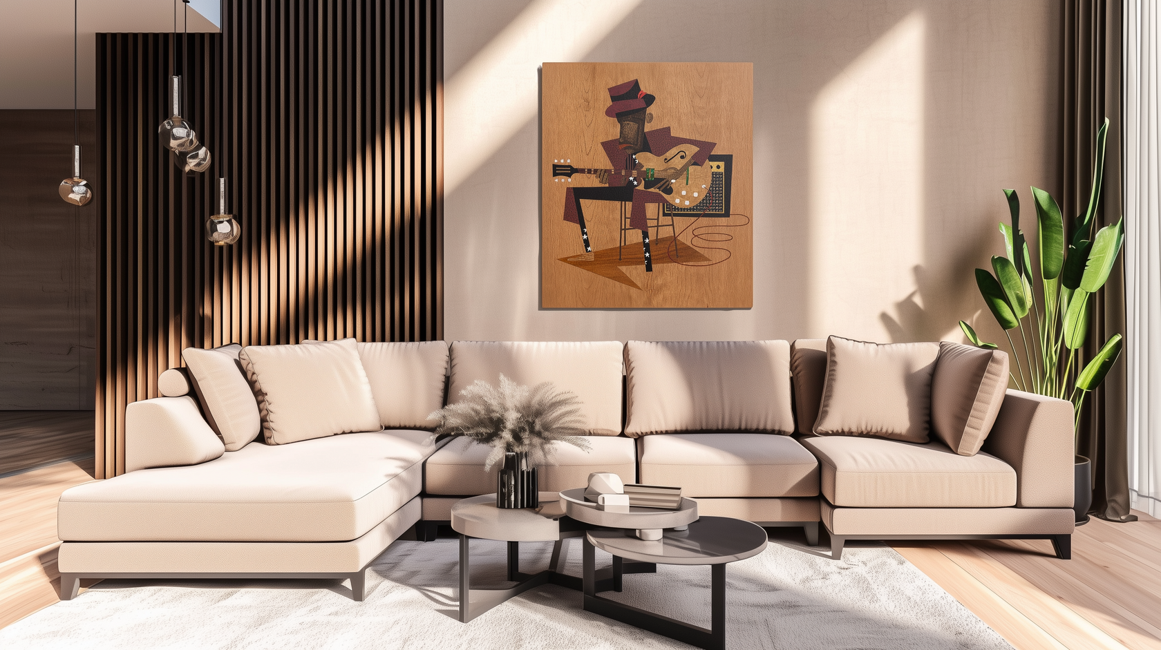 РЕКОМЕНДАЦИИ ПО РАЗМЕЩЕНИЮ Подходит для кабинета, гостиной, творческих пространств и арт-интерьеров. Хорошо смотрится как акцентная работа в современных и эклектичных интерьерах.